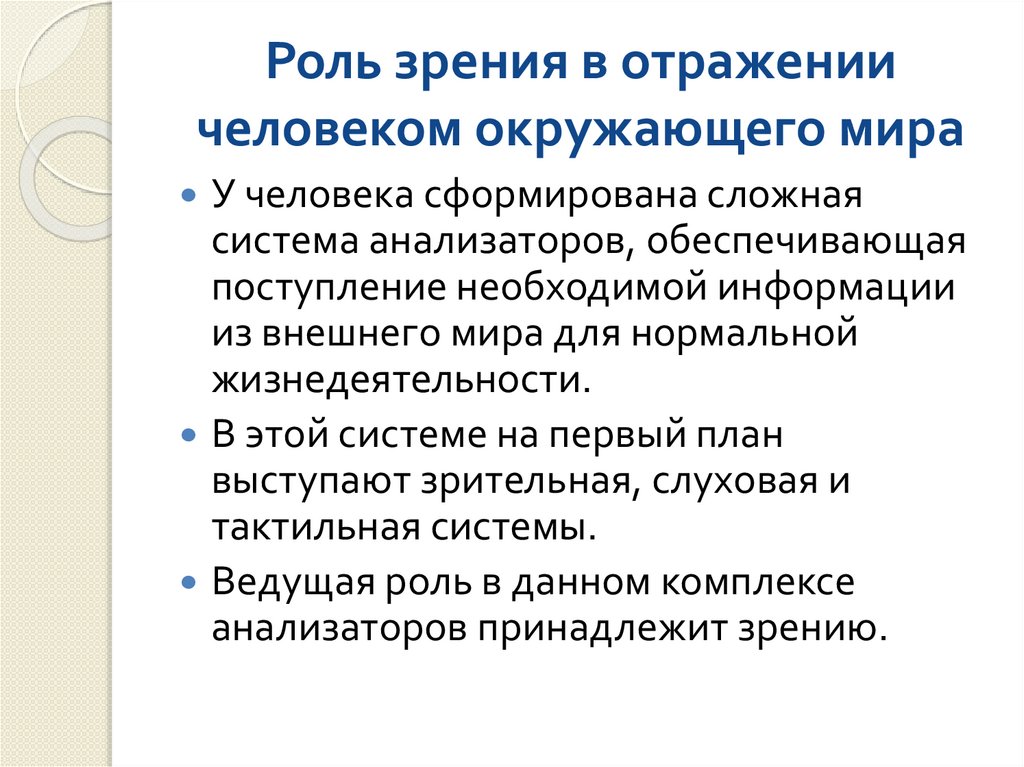 Роль зрения в отражениичеловеком окружающего мира
