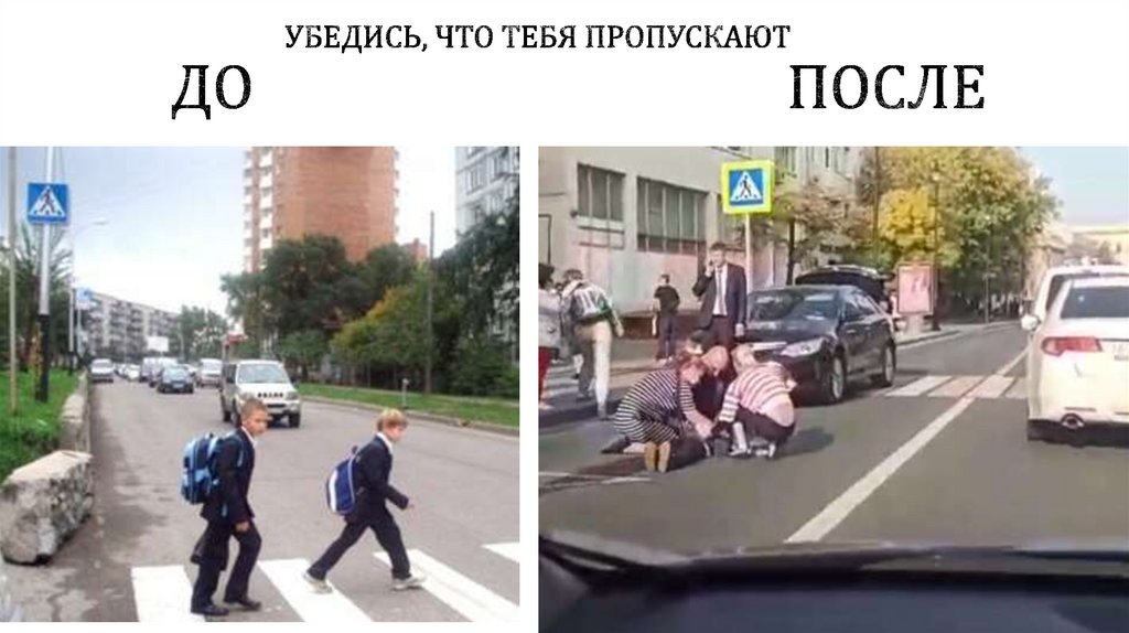 1) Переходя дорогу, даже по пешеходному переходу, внимательно смотри по