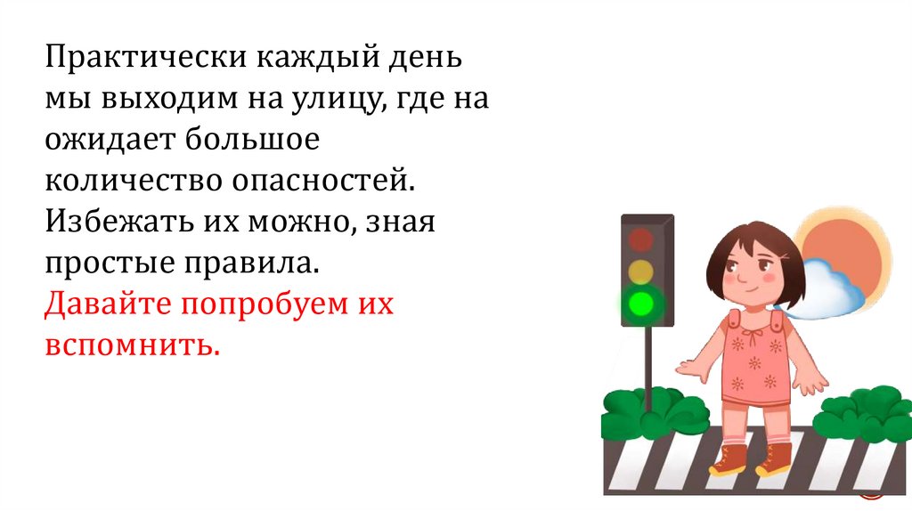 сторонам, убедись, что все машины остановились. Ведь ни один светофор