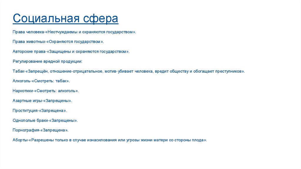Социальная сфераПрава человека-«Неотчуждаемы и охраняются государством».