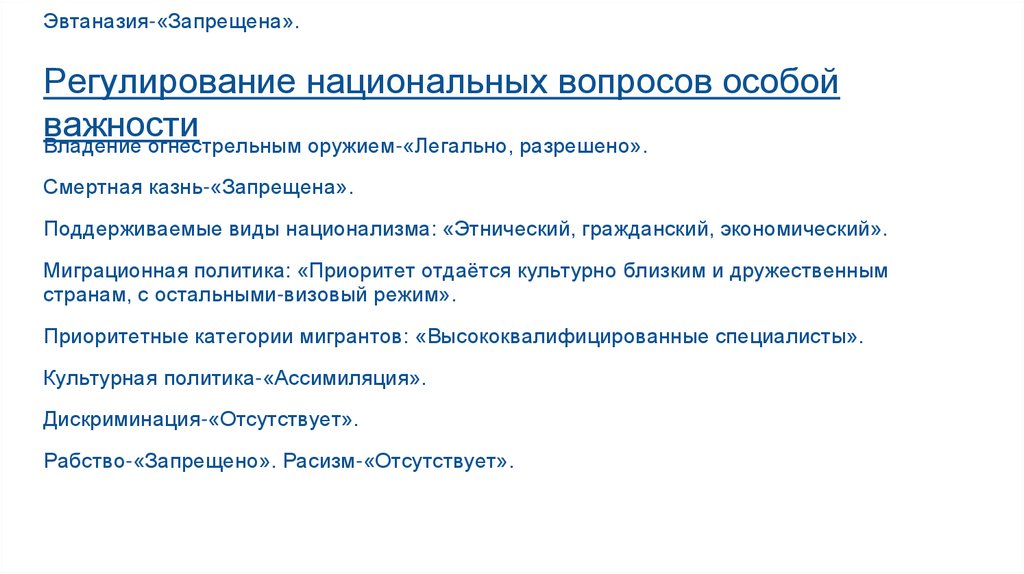 Эвтаназия-«Запрещена».Регулирование национальных вопросов особой