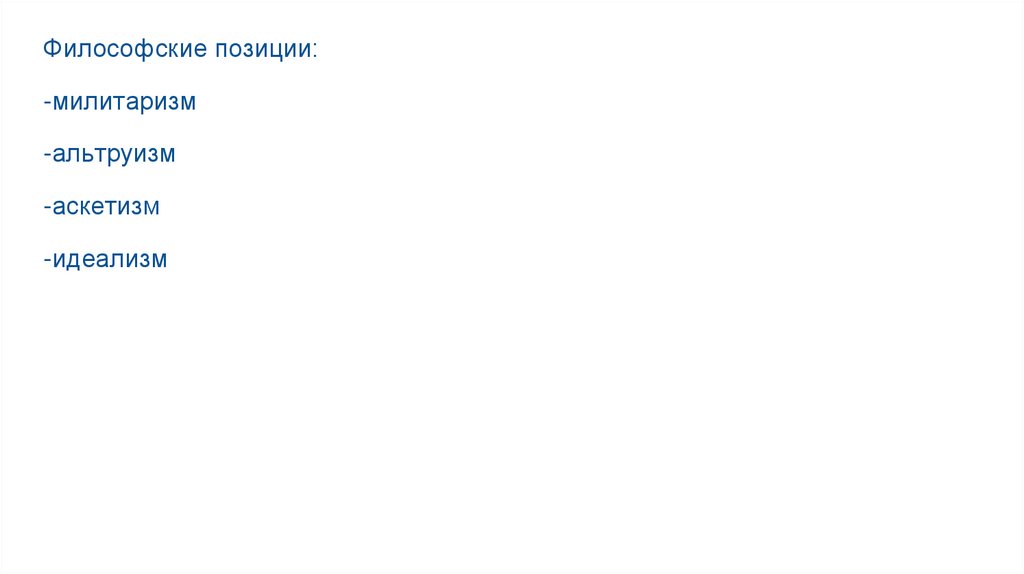 Философские позиции:-милитаризм