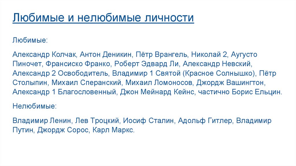 Любимые и нелюбимые личностиЛюбимые: