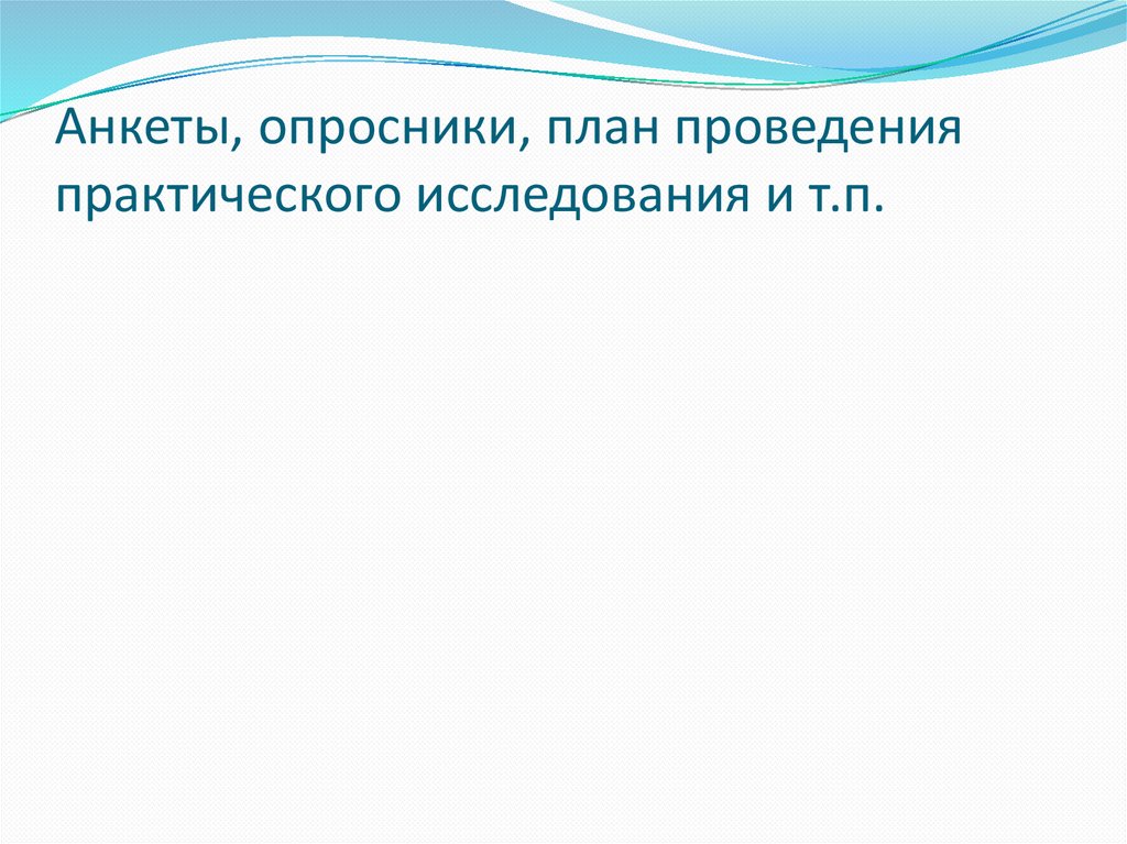 Анкеты, опросники, план проведенияпрактического исследования и т.п.