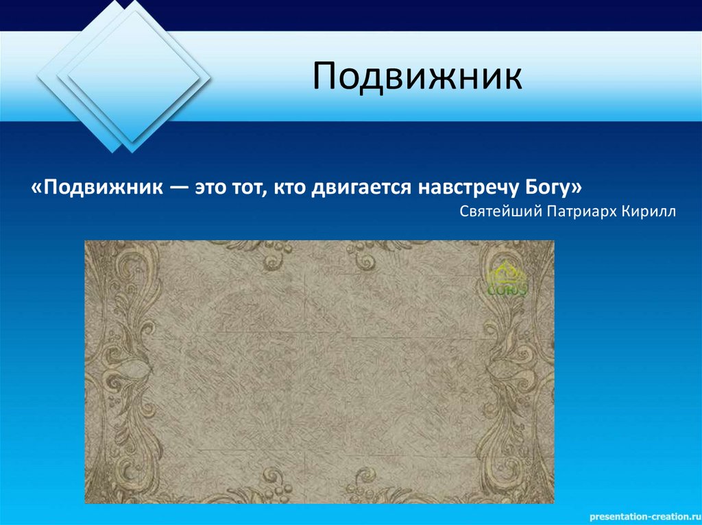Подвижник«Подвижник ― это тот, кто двигается навстречу Богу»