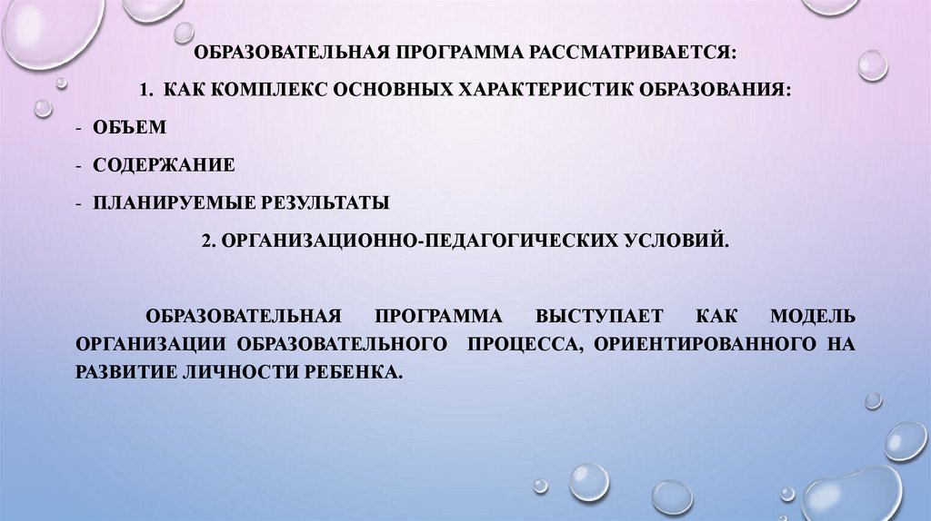 ОБРАЗОВАТЕЛЬНАЯ ПРОГРАММА РАССМАТРИВАЕТСЯ:1. КАК КОМПЛЕКС ОСНОВНЫХ ХАРАКТЕРИСТИК ОБРАЗОВАНИЯ:
