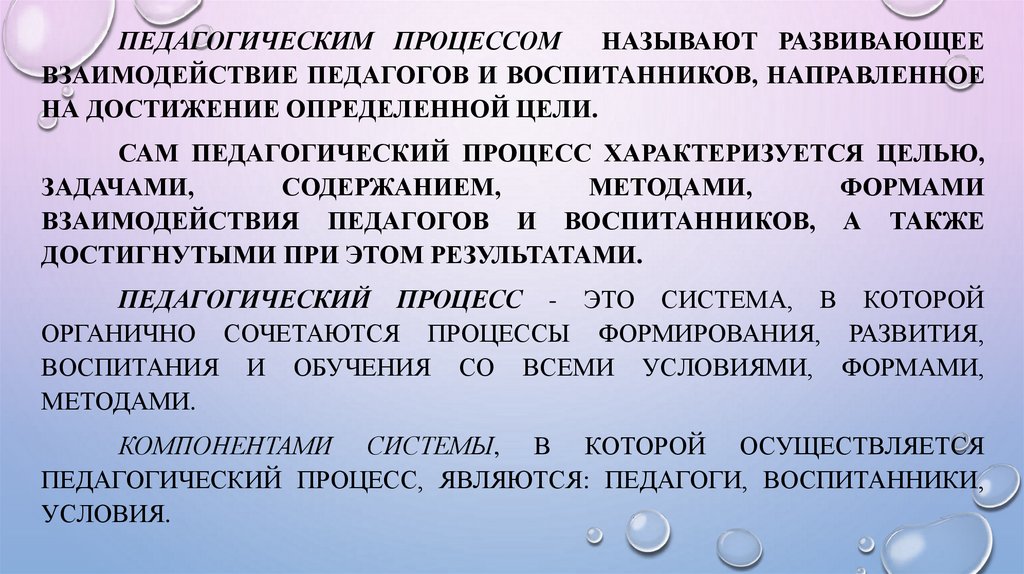 ПЕДАГОГИЧЕСКИЙ ПРОЦЕСС - ЭТО СИСТЕМА, В КОТОРОЙ