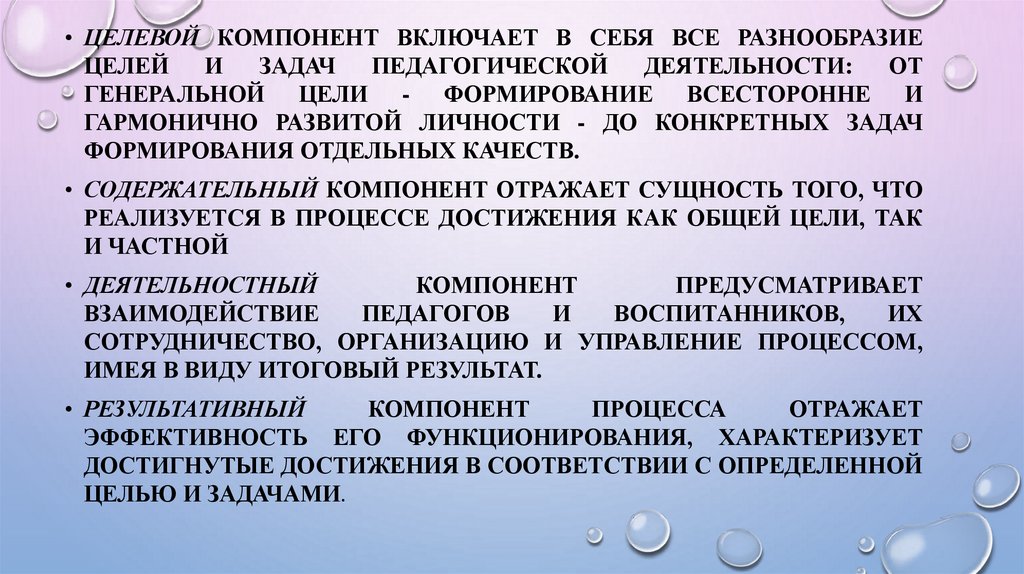 • ЦЕЛЕВОЙ КОМПОНЕНТ ВКЛЮЧАЕТ В СЕБЯ ВСЕ РАЗНООБРАЗИЕЦЕЛЕЙ