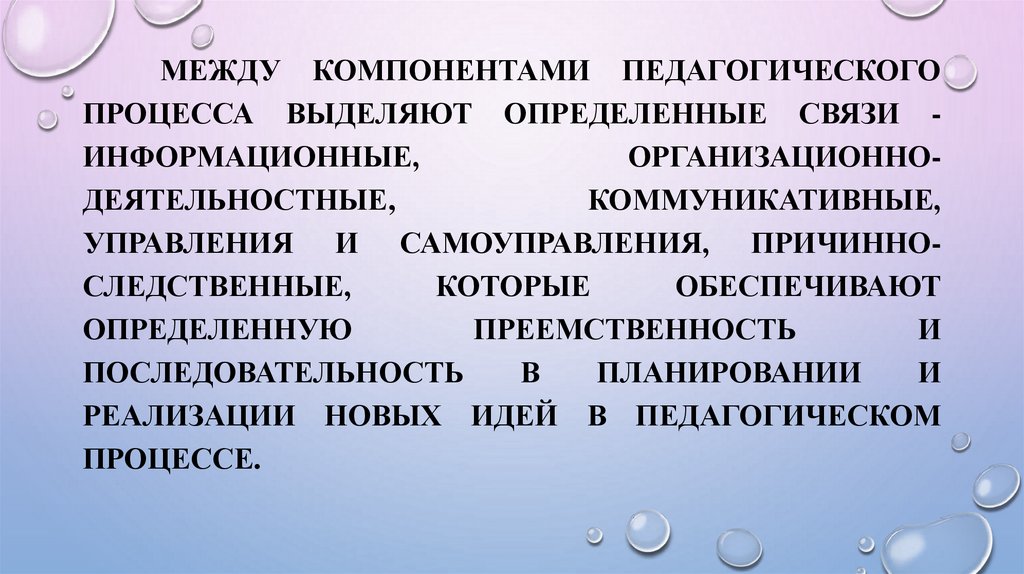 МЕЖДУ КОМПОНЕНТАМИ ПЕДАГОГИЧЕСКОГОПРОЦЕССА ВЫДЕЛЯЮТ ОПРЕДЕЛЕННЫЕ СВЯЗИ ИНФОРМАЦИОННЫЕ,