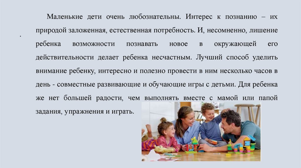 Маленькие дети очень любознательны. Интерес к познанию – их.