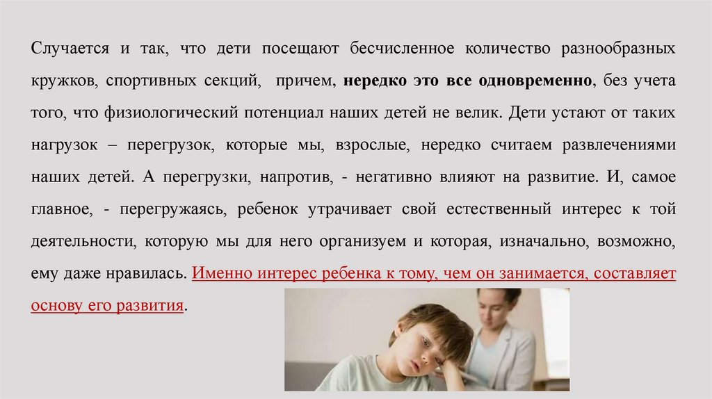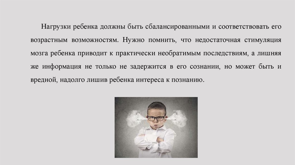 наших детей. А перегрузки, напротив, - негативно влияют на развитие. И, самое