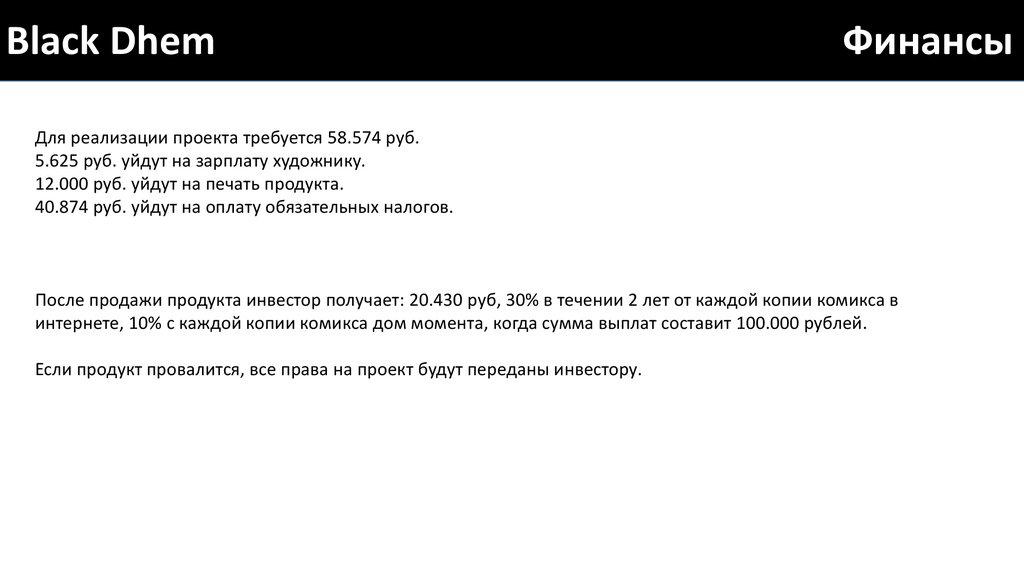 Если продукт провалится, все права на проект будут переданы инвестору.
