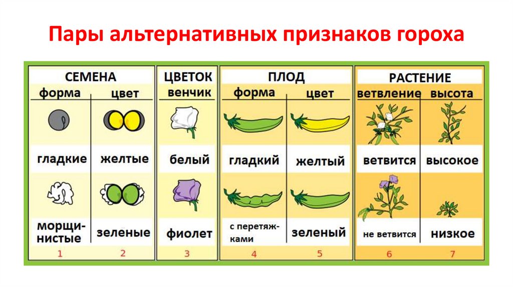 Пары альтернативных признаков гороха5.