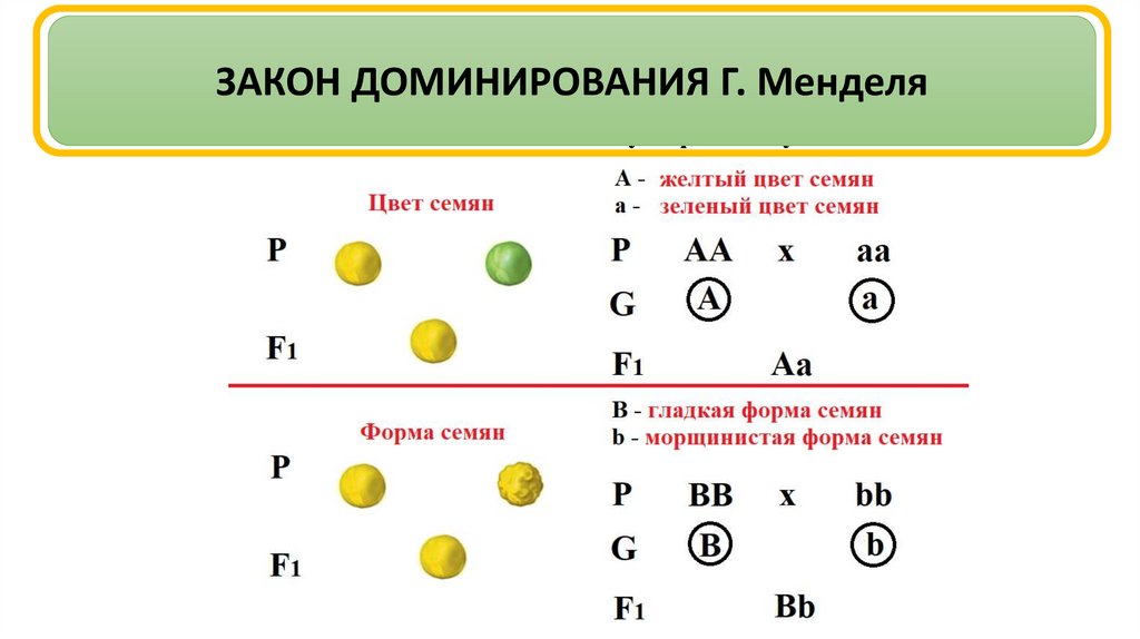 ЗАКОН ДОМИНИРОВАНИЯ Г.МенделяПри скрещивании гомозиготных особей, анализируемых по одной паре