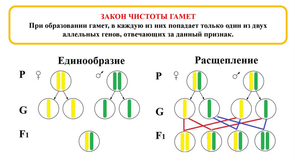ЗАКОН ЧИСТОТЫ ГАМЕТПри образовании гамет, в каждую из них попадает только один из двух