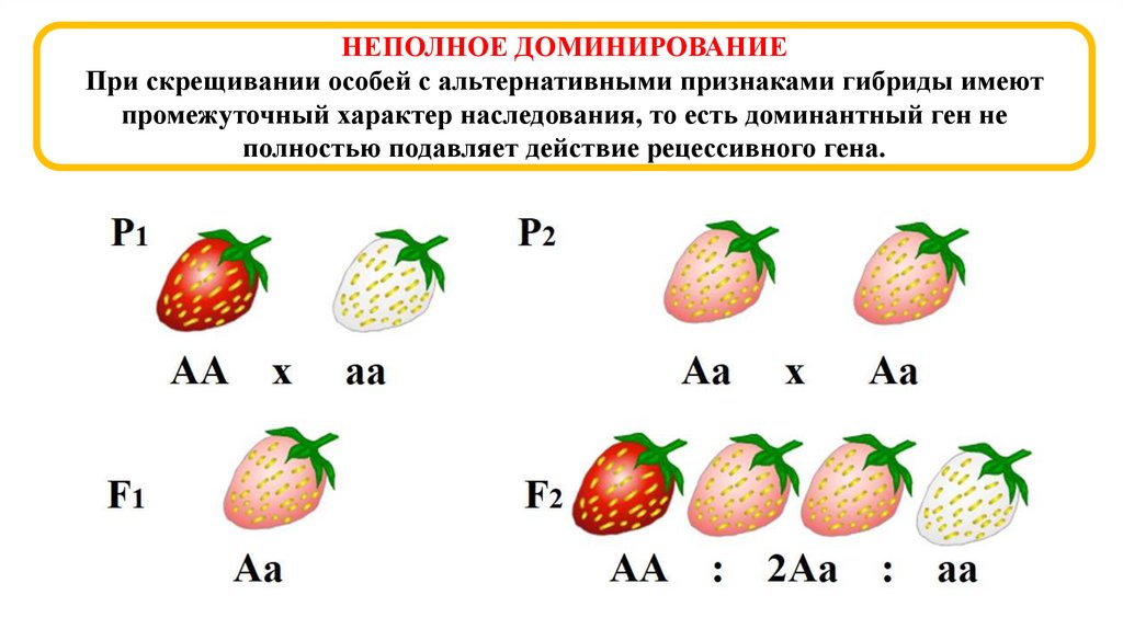 НЕПОЛНОЕ ДОМИНИРОВАНИЕПри скрещивании особей с альтернативными признаками гибриды имеют