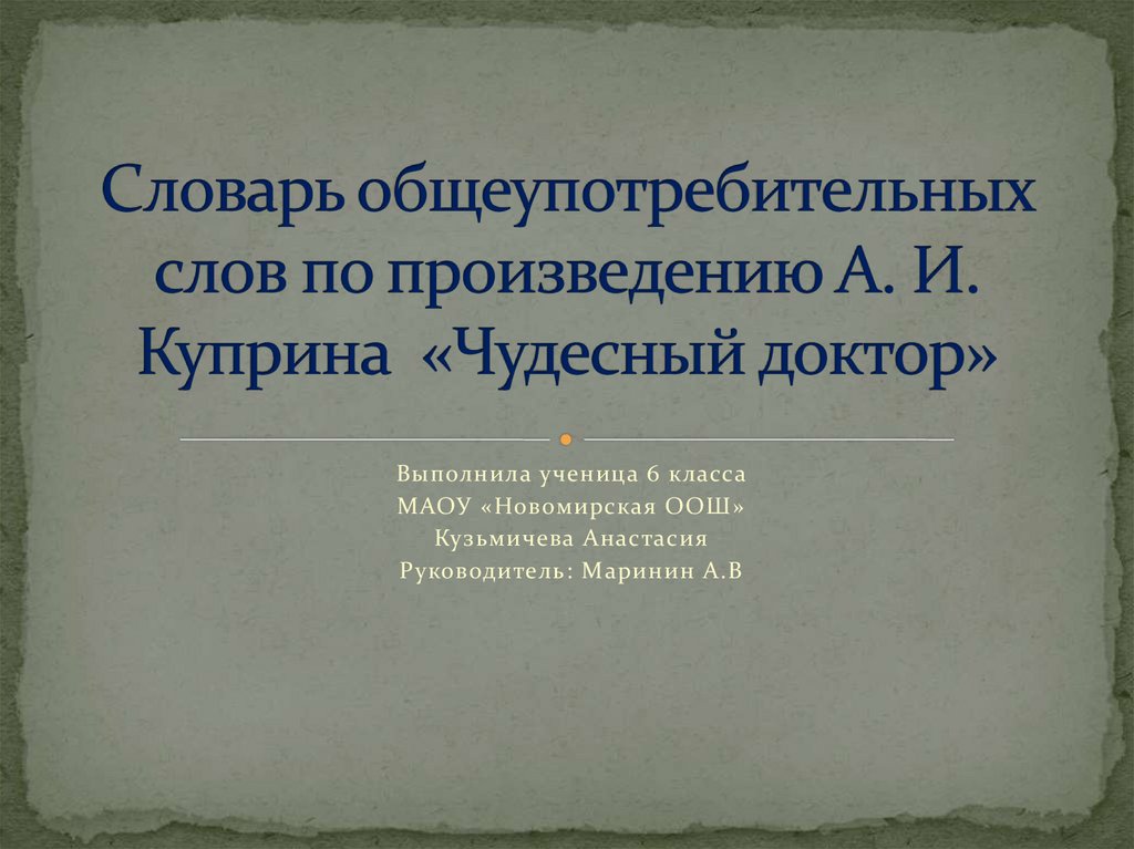 «Чудесный доктор» Александр Иванович Куприн