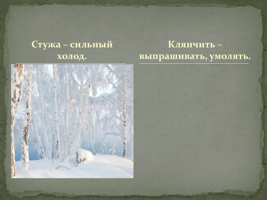 Стужа – сильныйхолод.