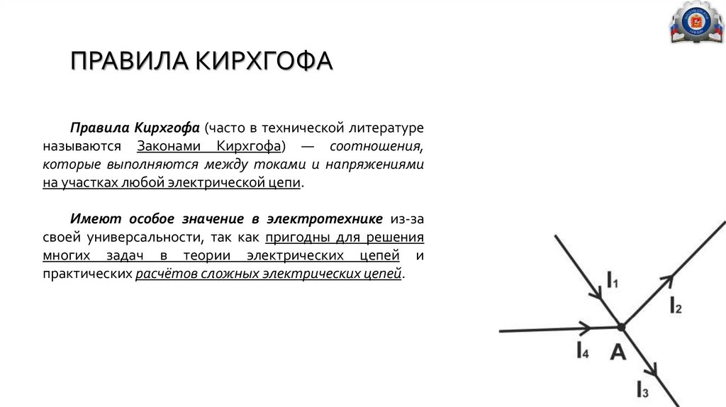 ПРАВИЛА КИРХГОФАПравила Кирхгофа (часто в технической литературе
