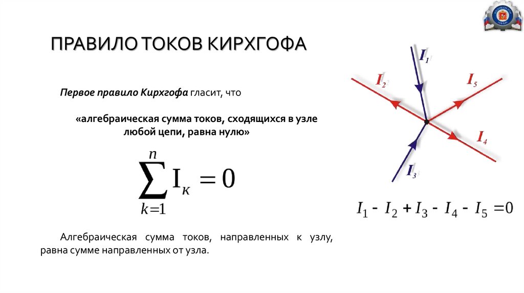 ПРАВИЛО ТОКОВ КИРХГОФАПервое правило Кирхгофа гласит, что
