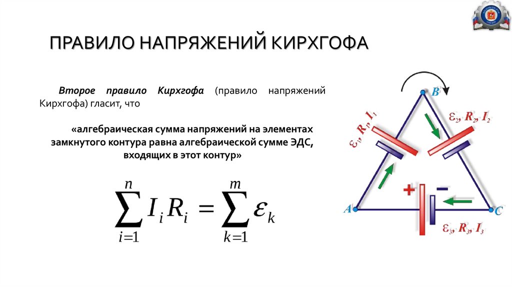 ПРАВИЛО НАПРЯЖЕНИЙ КИРХГОФАВторое правило