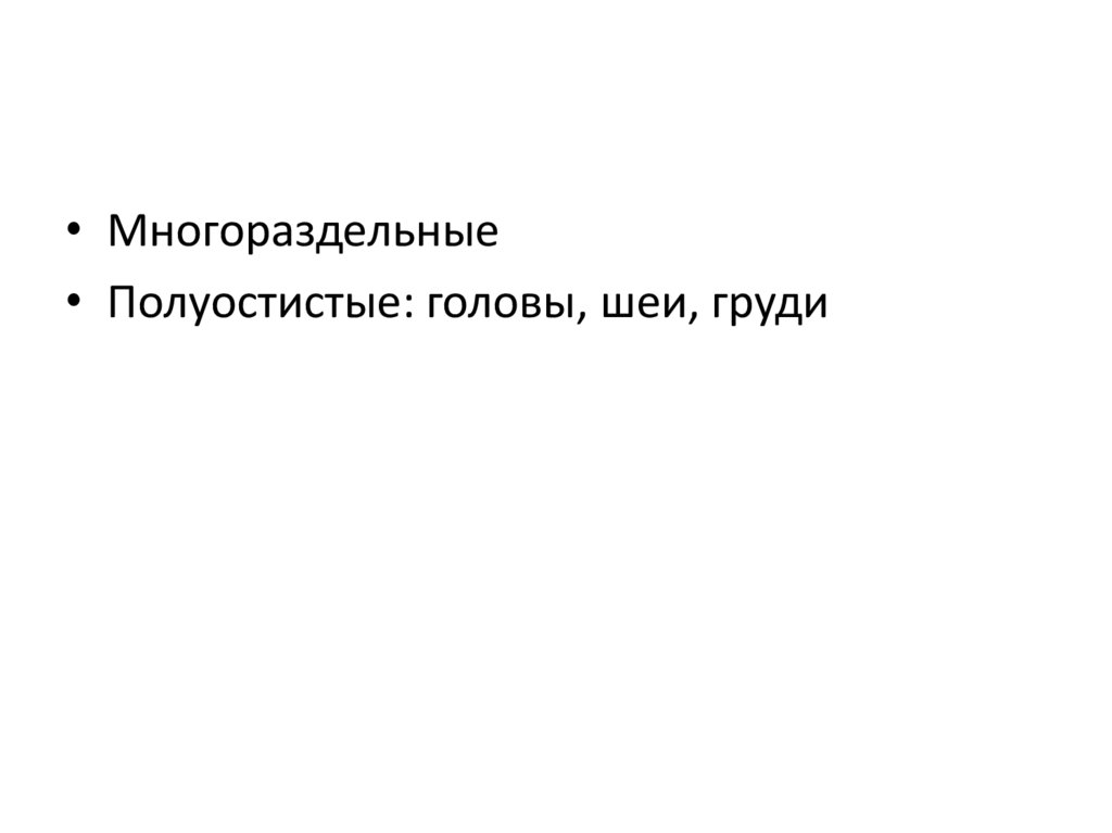 • Многораздельные• Полуостистые: головы, шеи, груди