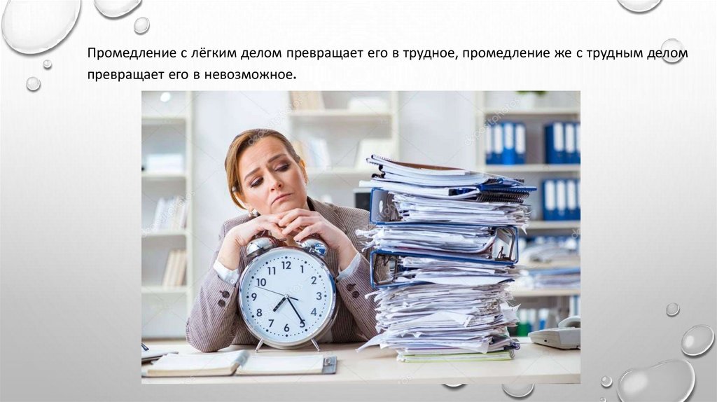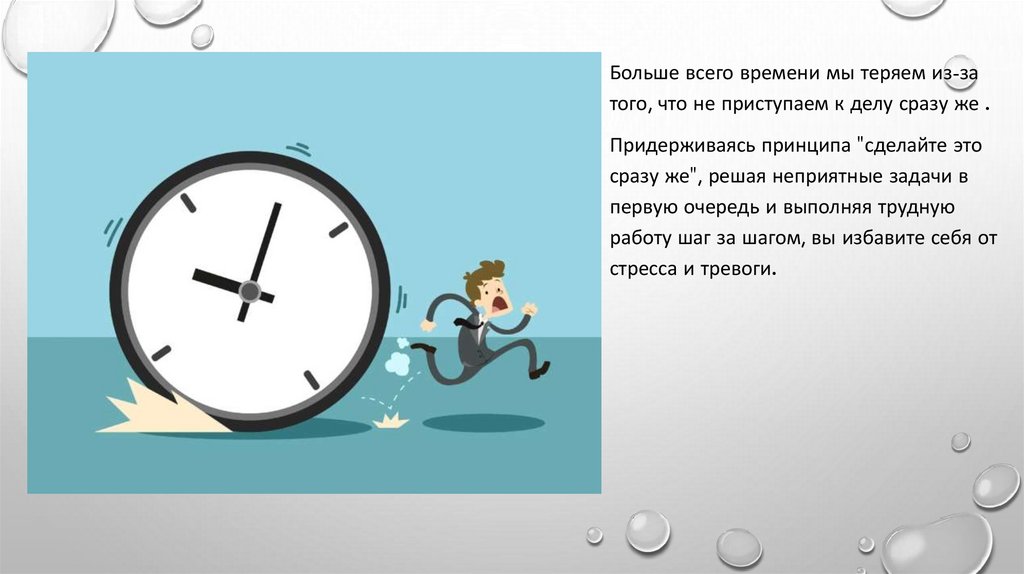 Больше всего времени мы теряем из-затого, что не приступаем к делу сразу же .