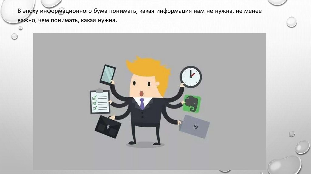 В эпоху информационного бума понимать, какая информация нам не нужна, не менееважно, чем понимать, какая нужна.