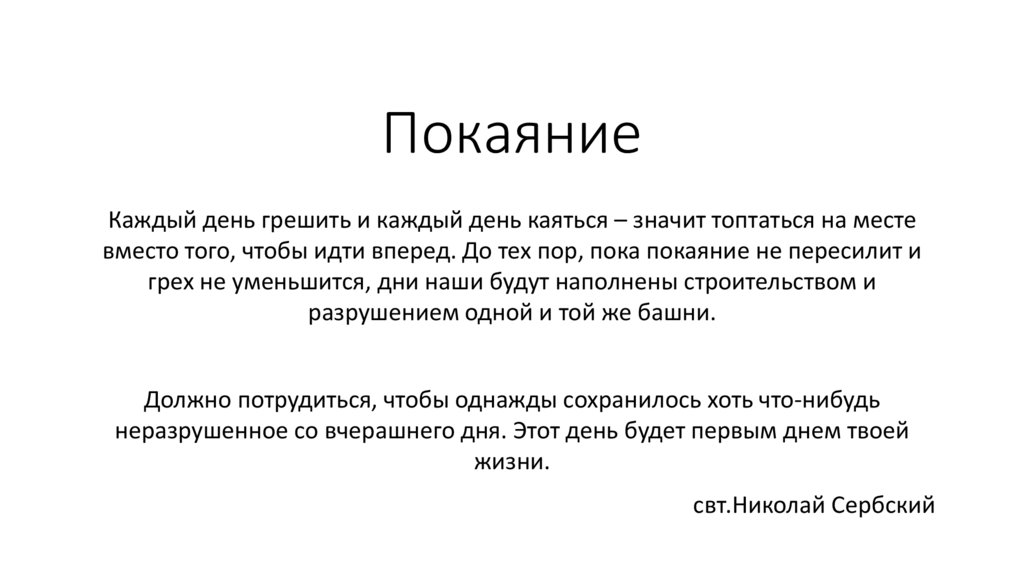 ПокаяниеКаждый день грешить и каждый день каяться – значит топтаться на месте