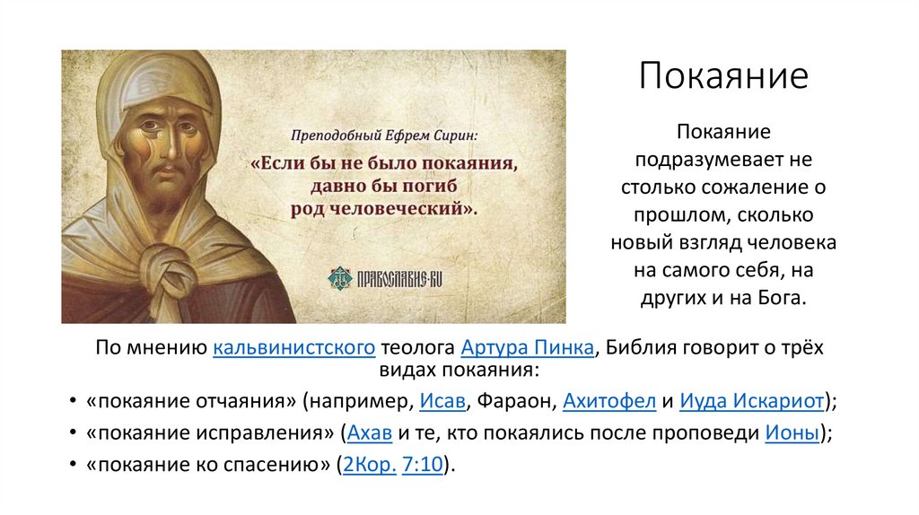 видах покаяния: