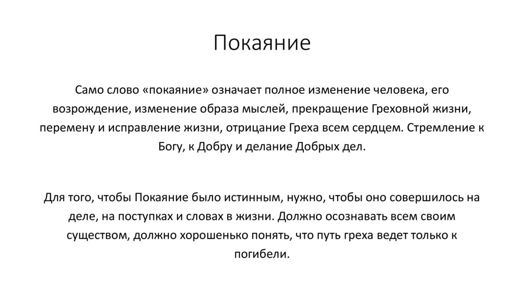 ПокаяниеСамо слово «покаяние» означает полное изменение человека, его