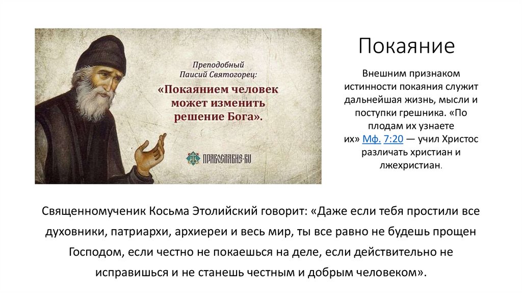 Что служит внешним признакомистинности покаяния?