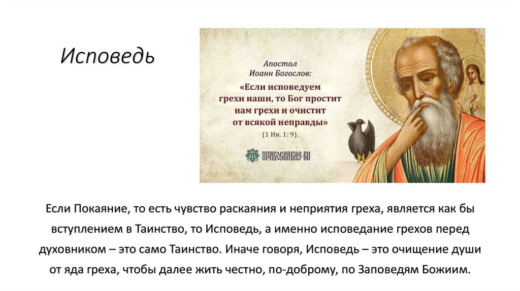 вступлением в Таинство, то Исповедь, а именно исповедание грехов перед