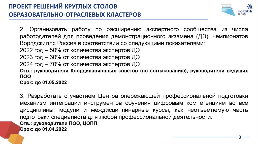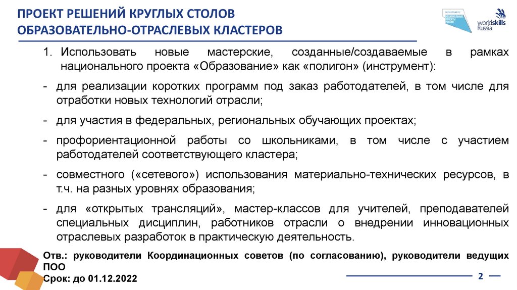 ПРОЕКТ РЕШЕНИЙ КРУГЛЫХ СТОЛОВОБРАЗОВАТЕЛЬНО-ОТРАСЛЕВЫХ КЛАСТЕРОВ