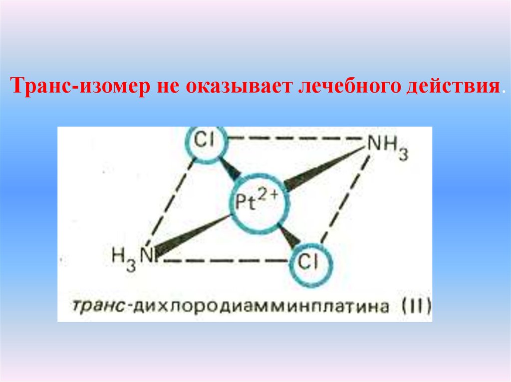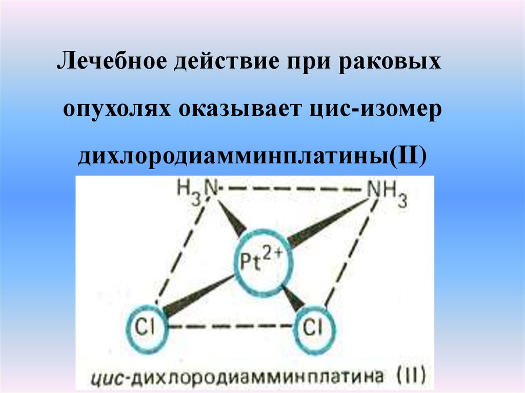 Лечебное действие при раковыхопухолях оказывает цис-изомер