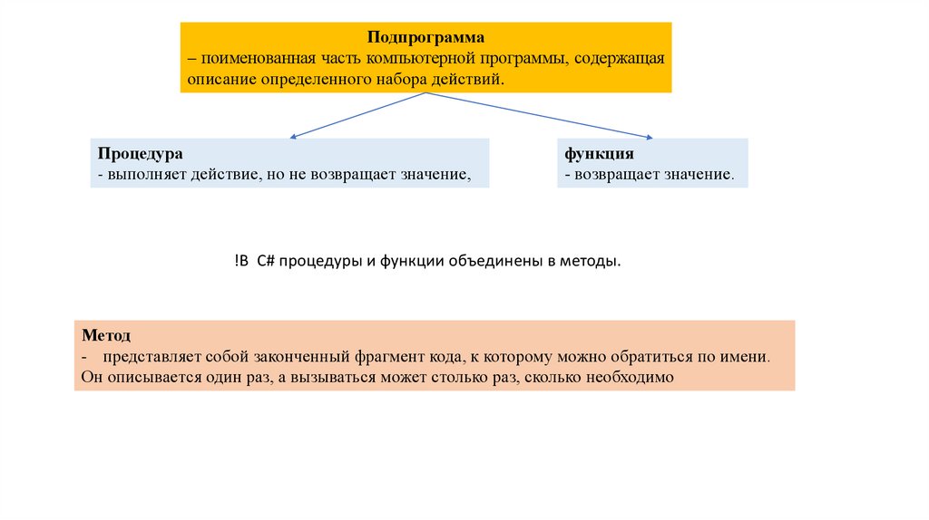 Подпрограмма– поименованная часть компьютерной программы, содержащая