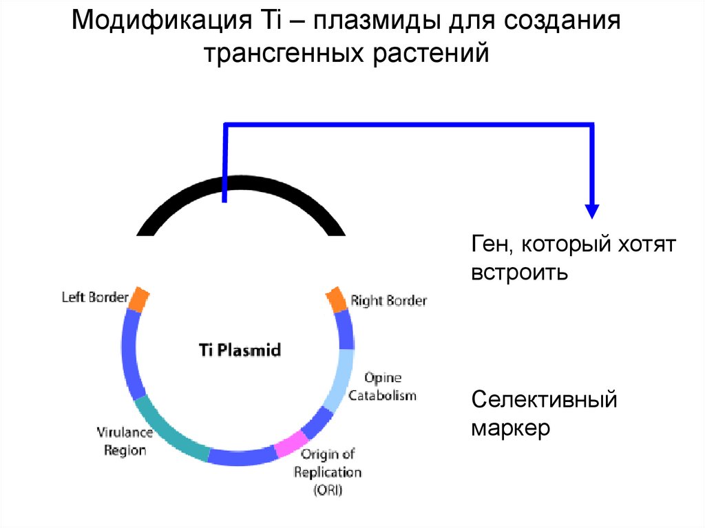 Модификация Ti – плазмиды для созданиятрансгенных растений