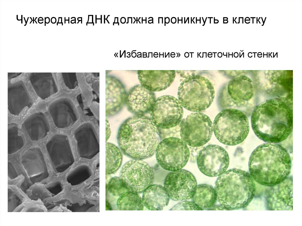Чужеродная ДНК должна проникнуть в клетку«Избавление» от клеточной стенки