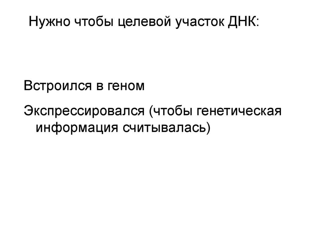 Нужно чтобы целевой участок ДНК:Встроился в геном