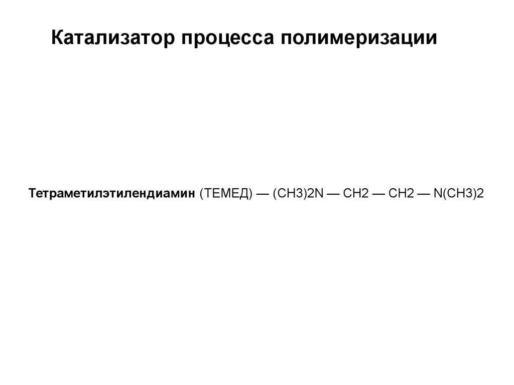 Катализатор процесса полимеризацииТетраметилэтилендиамин (ТЕМЕД) — (СН3)2N — CH2 — CH2 — N(СН3)2