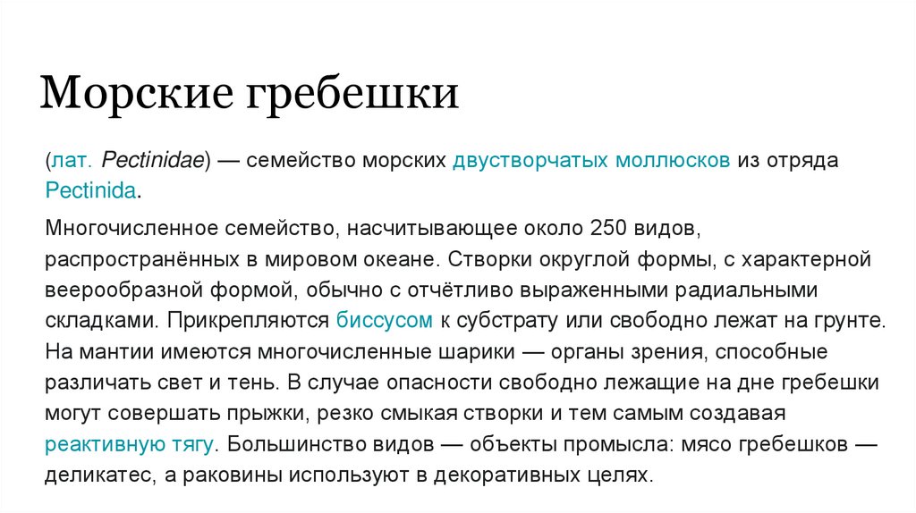 реактивную тягу. Большинство видов — объекты промысла: мясо гребешков —