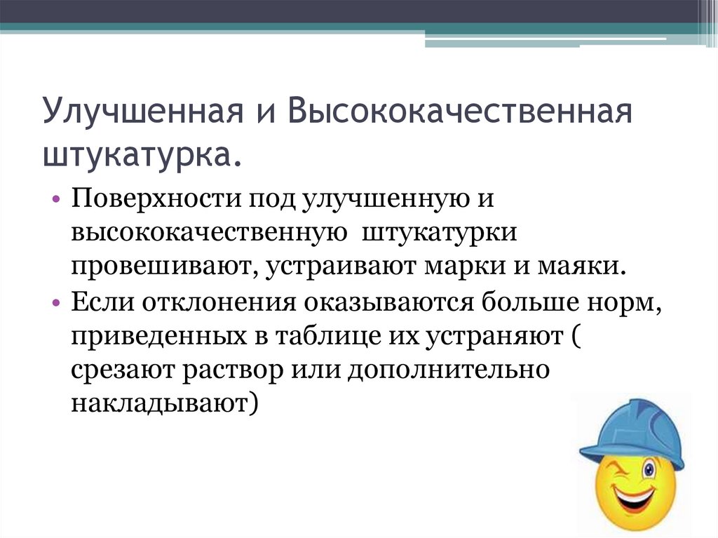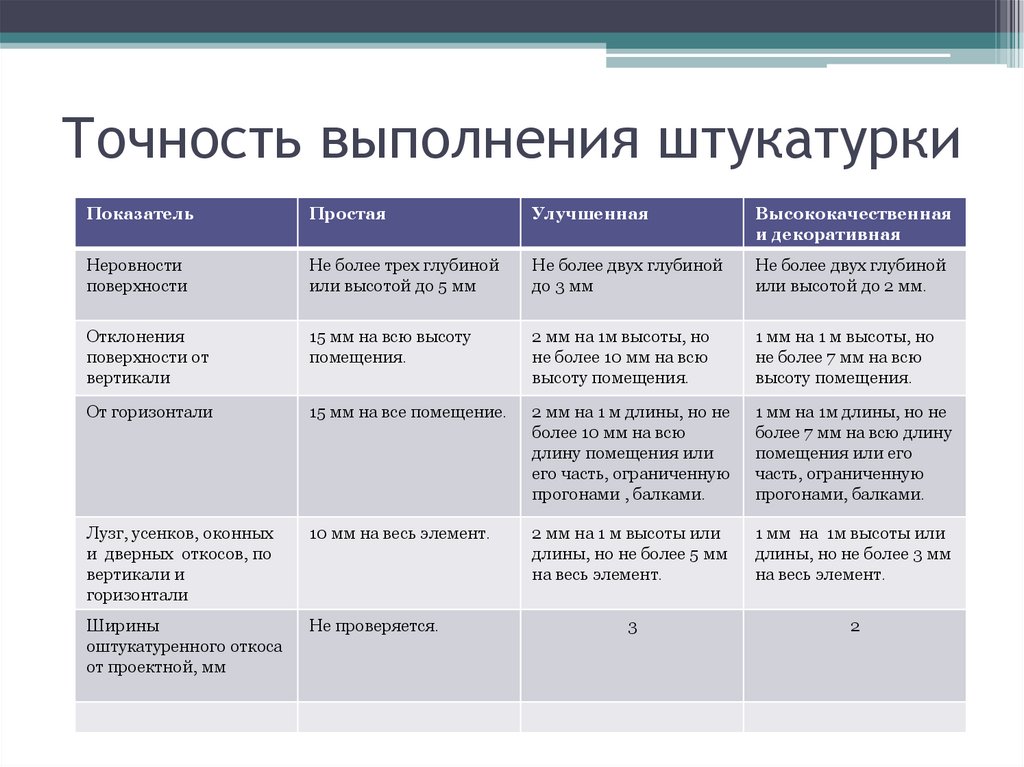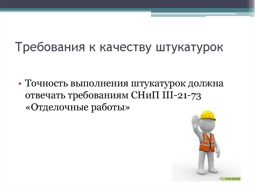 Требования к качеству штукатурок• Точность выполнения штукатурок должна