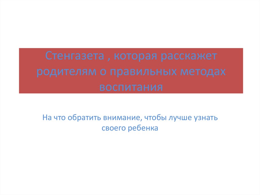 Стенгазета, которая расскажет родителям о правильных методах воспитания