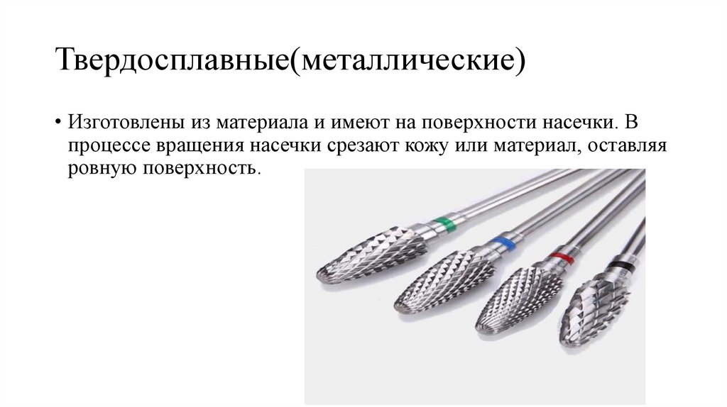 Твердосплавные(металлические)• Изготовлены из материала и имеют на поверхности насечки. В