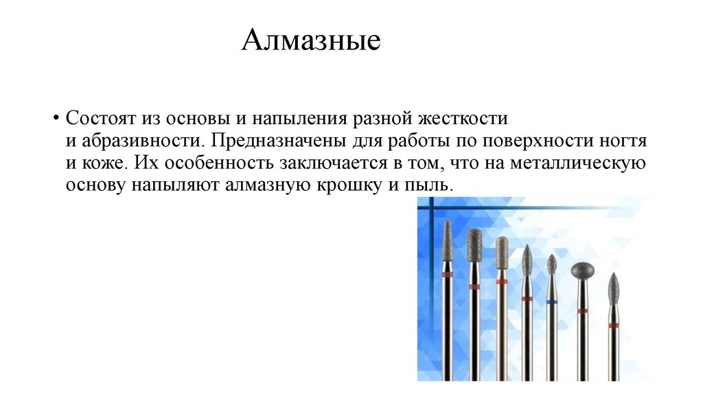 Алмазные• Состоят из основы и напыления разной жесткости
