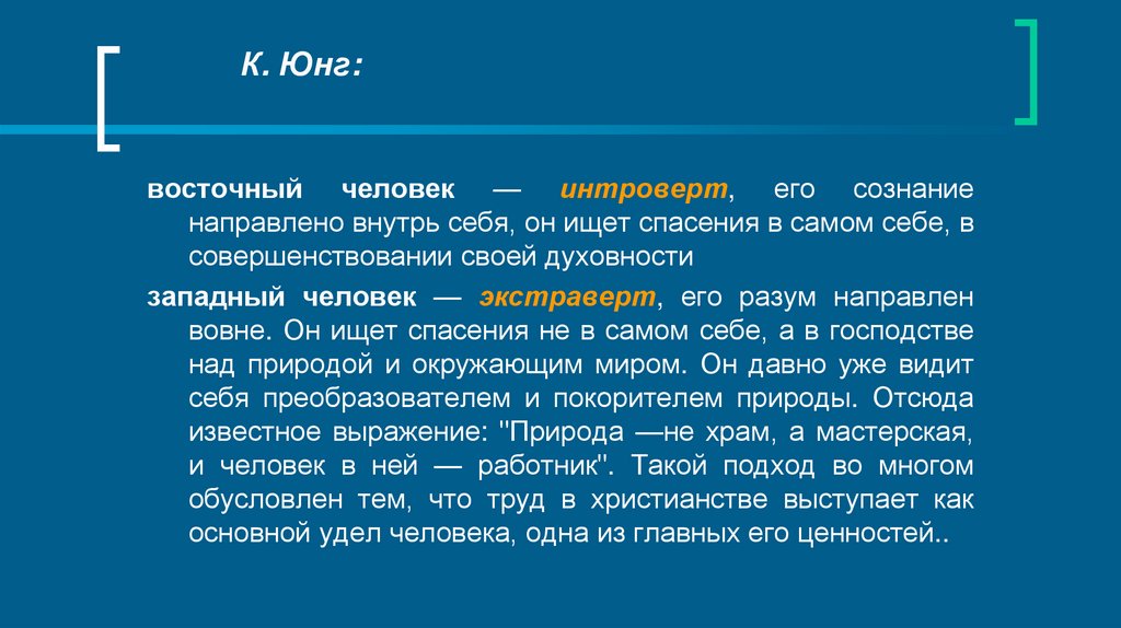 К. Юнг:восточный человек — интроверт, его сознание
