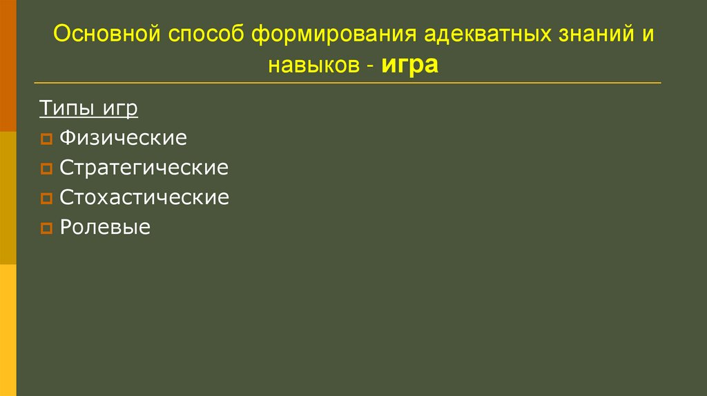 Основной способ формирования адекватных знаний инавыков - игра