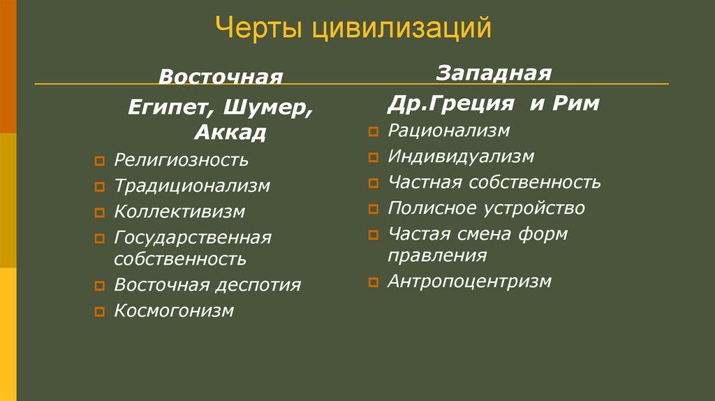 Черты цивилизацийВосточная