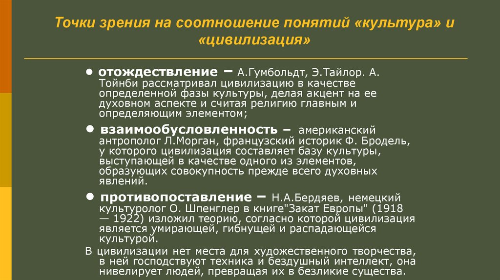 Точки зрения на соотношение понятий «культура» и«цивилизация»