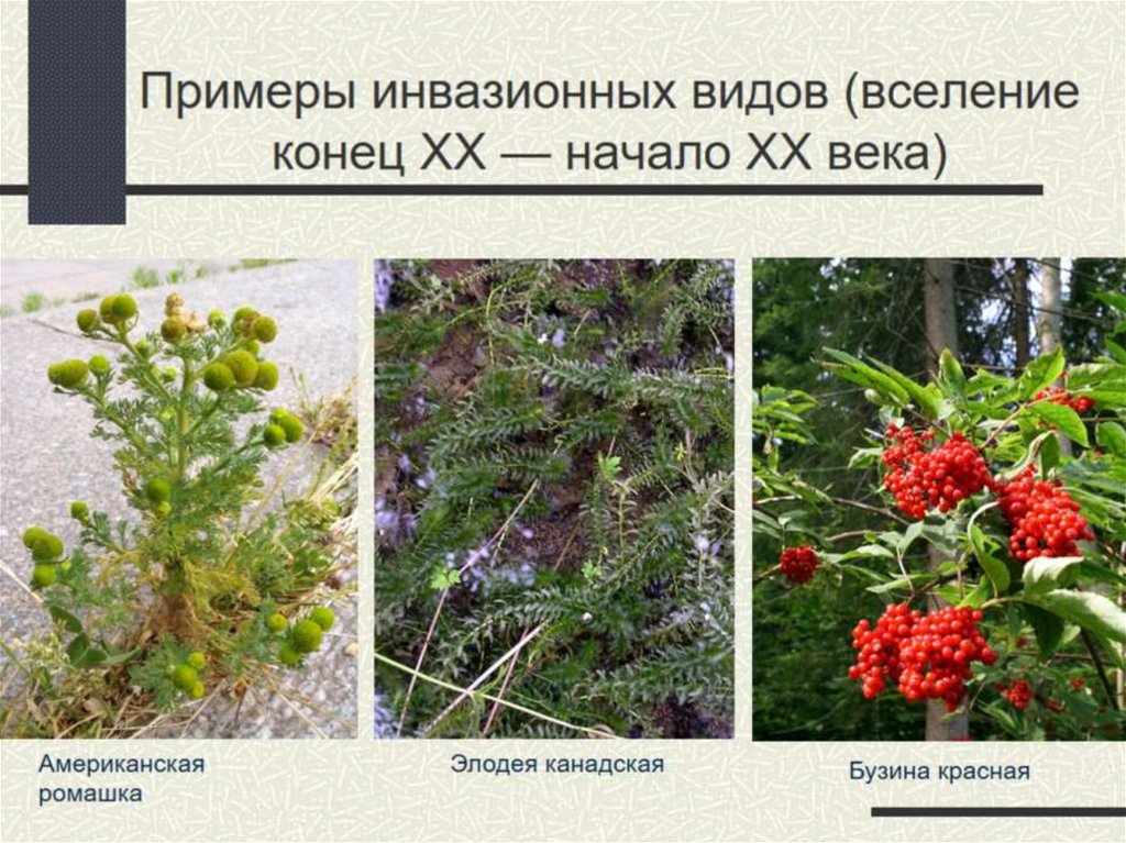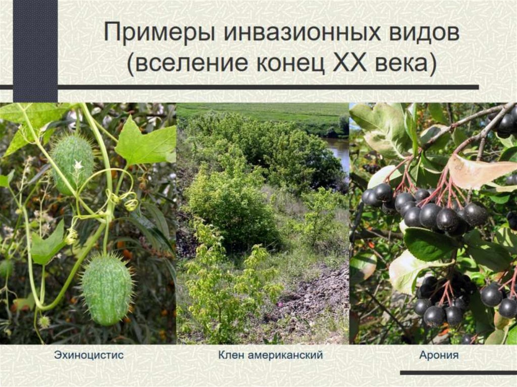 Примеры инвазионных видов (вселениеконец ХХ — начало XX века)